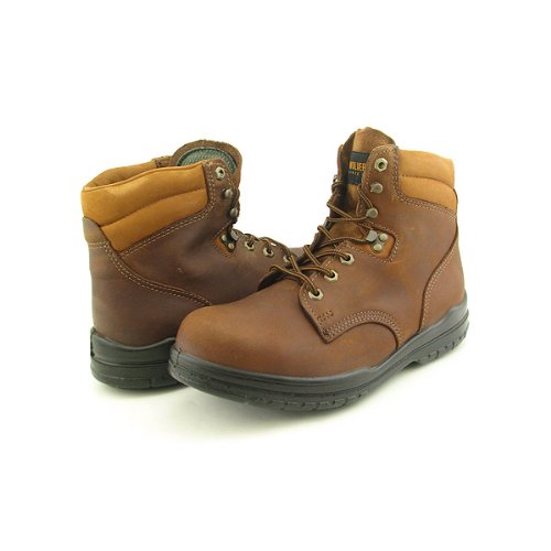 Tough work shouldn't be so demanding on your feet. When the going gets tough, turn to these Wolverine 3753 Men's 6-inch Steel-Toe EH Durashocks Work Boots to take the load off. Rugged, full-grain brown leather uppers make these Wolverine Work Boots seriously durable and work-ready. The 6-inch lace-up design features light brown accents and padded collars for easy wear and hardy style. You won't ever go back once you experience what Wolverine's Durashocks outsoles deliver. Aside from reliable, multi-surface traction, these outsoles are specially-designed to infuse superior comfort with every step you take by absorbing shock and returning energy for less foot and leg pain after long days on the job. The outsoles are slip-resistant to prevent falls and oil-resistant to stop corrosion for longer-lasting wear. The outsoles are just the beginning of the comfort features in this pair. Lightweight fiberglass shanks offer improved stability and shock absorption for more control and less fatigue. Removable, dual-density polymer footbeds provide additional shock absorption and cushion each step while returning energy for all-day comfort that lasts. For safety, Wolverine includes ASTM-approved steel toes and electrical hazard protection in this pair so you stay guarded from impacts, heavy objects and shock in dangerous environments. Give your feet a break (and your back, and your legs...). Pick up your Wolverine 3753 Men's 6-inch Steel-Toe EH Durashocks Work Boots today to experience the comfort and protection found in performance-driven boots designed just for the demands of your day. Click on the cart now and we'll send your pair right to your door. You can also enjoy all the comfort of this boot in a soft toe with the Wolverine 3762. Sizes Manufactured: N 9-12,13,14 | M 7-12,13,14,15 | W 7-12,13,14